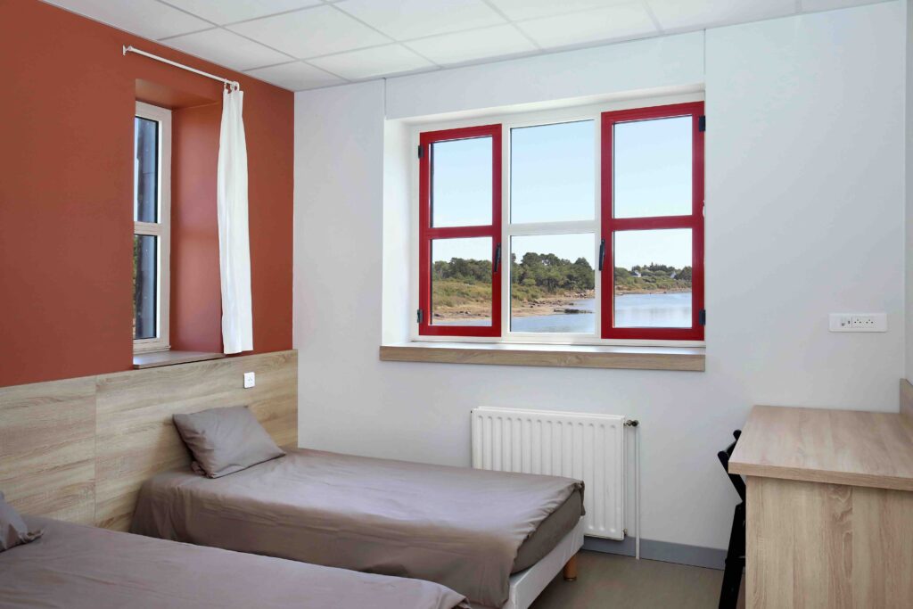 Le centre de classe de mer, situé à 100 mètres de la Rivière du Sac’h, propose une restauration en pension complète avec un cuisinier sur place et possibilité de paniers repas. Il dispose de 5 salles équipées pour 35 personnes. L’hébergement comprend 168 lits répartis en chambres de 2 à 6 lits, chacune avec salle de bain privative. Un cadre idéal pour un séjour éducatif alliant confort, nature et découverte.